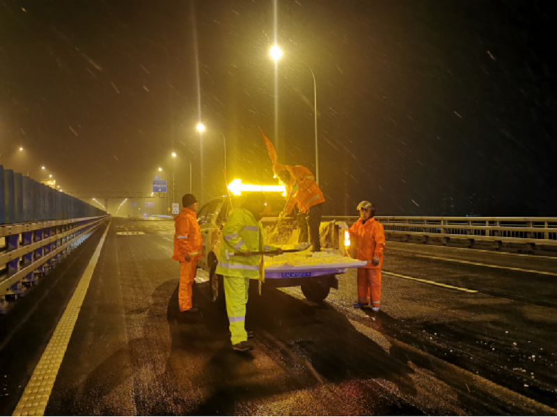 1月28日,我市地區(qū)普降雨雪,隨著氣溫降到零攝氏度以下,蕪湖長江三橋跨江路段出現(xiàn)路面積雪結(jié)冰現(xiàn)象,為往返江南江北的市民交通出行帶來極大安全隱患。面對雨雪冰凍天氣的迅猛來襲,大橋公司和城建集團(tuán)第一時間進(jìn)入應(yīng)戰(zhàn)狀態(tài),迅速啟動除雪保通專項(xiàng)應(yīng)急預(yù)案,全方位集結(jié)應(yīng)急保暢力量,加大管養(yǎng)巡查頻次,強(qiáng)化巡查力度。與轄區(qū)大橋交警大隊(duì)強(qiáng)化聯(lián)勤聯(lián)動,組織人員奔赴積雪路段,全力開展除雪保通工作。