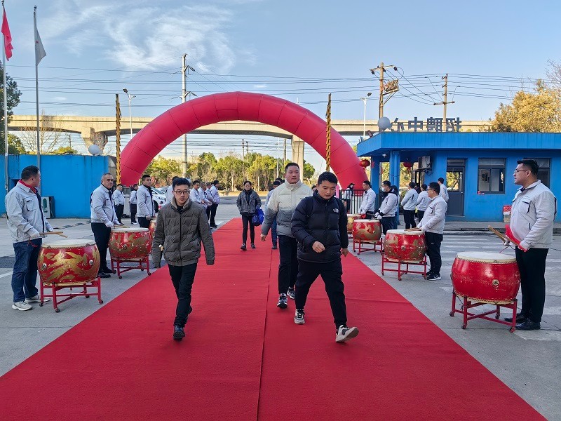 滿載收獲喜悅,滿懷奮進(jìn)豪情。蕪湖莫森泰克汽車科技股份有限公司總經(jīng)理周玉成攜帶全司中、高層領(lǐng)導(dǎo)干部整齊列隊(duì),在公司大門(mén)口迎接前來(lái)上班的員工們。伴著八面大鼓鏗鏘有力的鼓點(diǎn)節(jié)奏和喜慶熱烈的歌曲聲,在清晨溫暖的陽(yáng)光中,來(lái)自各方的員工們紛紛踏著紅地毯穿過(guò)紅色拱門(mén),進(jìn)入廠區(qū)開(kāi)啟新年第一天的工作。